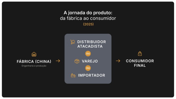 É aqui que a estratégia de marca própria (private label) ganha protagonismo. Ela funciona como um atalho estratégico entre indústria e consumidor: o varejo cria sua própria marca, negocia direto com fabricantes, corta elos da cadeia e captura valor. O distribuidor, da mesma forma, conecta-se com a fábrica (nacional ou internacional)Fábrica China até o Consumidor final Fábrica China até o Consumidor final, cria sua marca própria e vende direto para o consumidor final. Um novo tabuleiro está se formando.